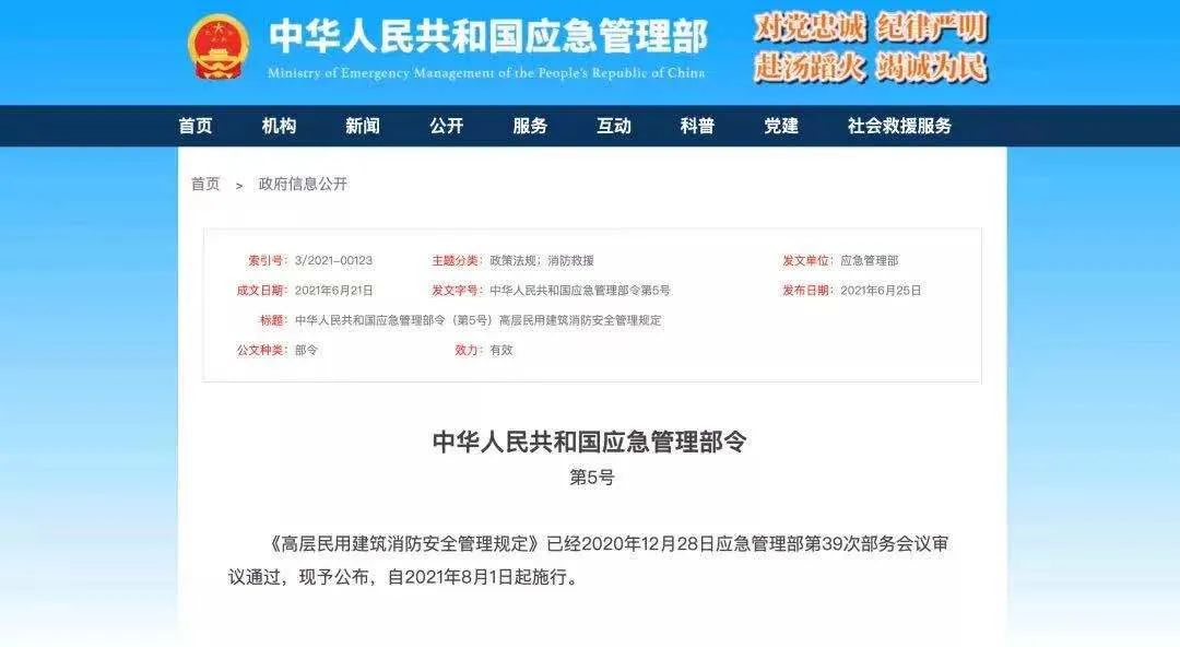 应急管理部《高层民用建筑消防安全管理规定》: