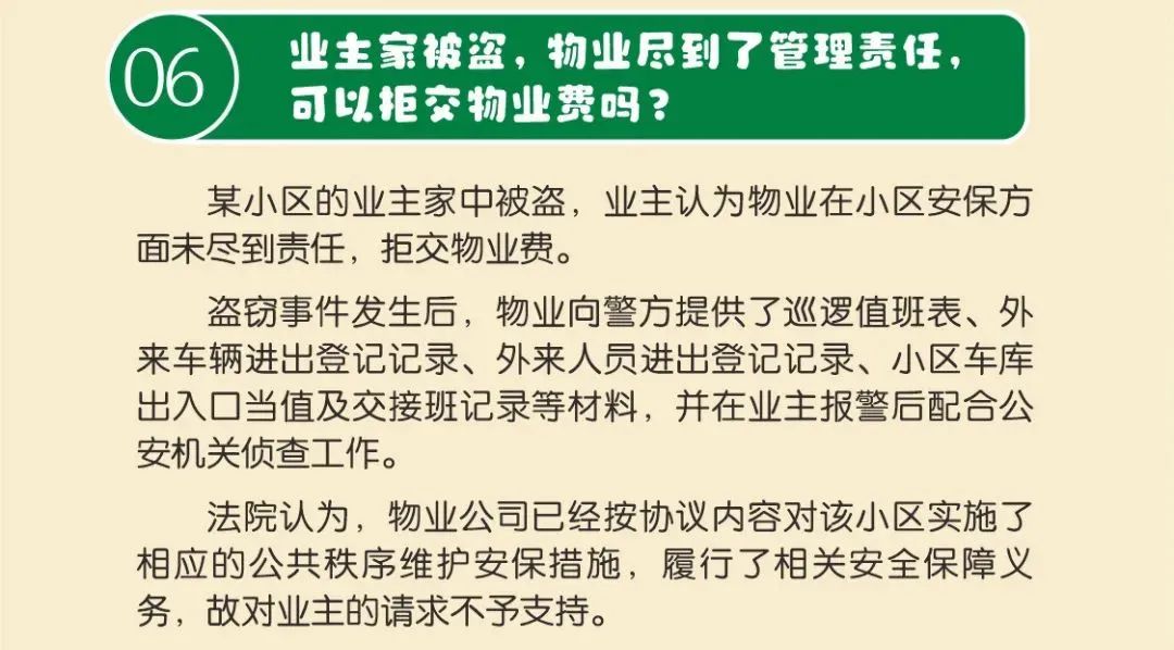 案情:一位业主被偷了辆摩托车,次年起就拒缴物业费用。物业公司把这位业主起诉到了法院,要求支付物业费3518元,并缴纳日千分之二滞纳金及1000元维权费用。