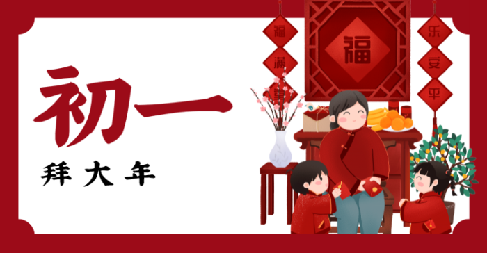 传统年俗中,初一拜年是长辈或者左邻右里,一般不出远门去拜年。除夕守岁后,初一早上人们开门互相道贺。晚辈给长辈拜年,长辈给压岁钱,压住邪祟。