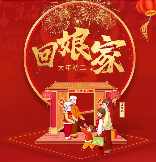 正月初二也是拜年,但是这一天嫁出门的闺女是要带着女婿一起走娘家的。其中又以新婚夫妇走娘家的规矩多。比如说带的礼物都要是成双成对的。娘家不能全收下,待回夫家时,还要再捎回去一部分。