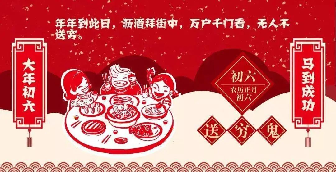 初五刚把财神迎进门,初六就要送走穷神。送穷神这一天,要在家里面进行大扫除,扫出来的垃圾,还有没用的破衣服等等要全部扔掉。正月初六“送穷”,是我国古代民间一种很有特色的岁时风俗,其意是祭送穷鬼、穷神。