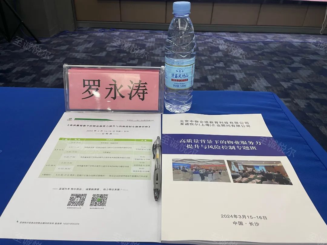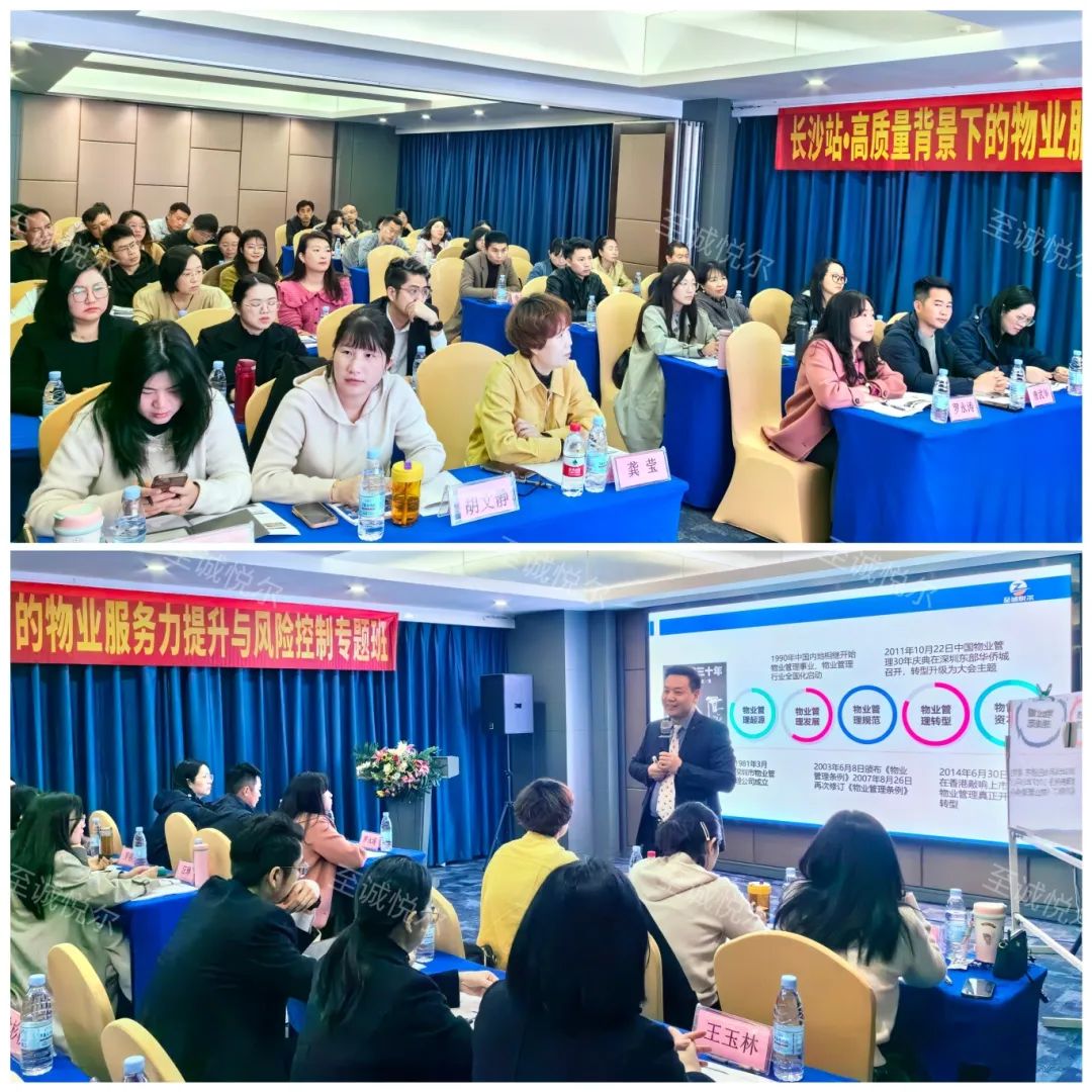 作为物业人,我们深知服务的重要!服务是我们收取物业费的关键抓手!更是物企多经增值服务的前提和基础!2024年3月15日,至诚悦尔(上海)企业顾问有限公司特别邀请到物业管理品控体系建设专家李豫老师,于长沙盛大开班,同心汇聚50多位物业人,他们来自新疆、黑龙江、甘肃、陕西、河北、广西、广东、安徽、湖北、河南等……距离时间从来不是学习路上的绊脚石,一起深度学习探讨高质量发展与服务力提升的的核心要点。课程伊始,至诚悦尔物业培训负责人赵园园老师主持了本场会议,介绍了班级成员及讲师情况,温馨提示课堂纪律以保证学习效果。课程全家福👏蓬勃向上的物业人👏物业服务需要痕迹,我们的学习同样需要定格美好。会场布置看似不起波澜,日复一日的努力,会突然在某一天,让你看到坚持的意义。课程现场课程第一天,至诚悦尔特聘讲师李豫老师从物业管理发展的趋势分析引出物业人应具备的知识地图:专业的知识储备、标杆思维、职场技能、培养领导力和管理能力以及自我管理和成长;从以上四个层面构建自己的成长路径和知识架构。在项目管理者的核心工作要点及权重客户维护中,重点解析如何正确做好向上管理,向上司争取资源;与此同时如何带好团队做好向下管理。不断抛出案例现场讨论。又从当下客户满意度的多维度指标引入到物业标准化建设要点;结合物业正反面案例指出物业服务方案的思路和定位;并深度剖析关键时刻管理、列举客户服务21个触点……课程互动有了第一天的框架建模;课程第二天直击细节,高频互动,充分分享。李老师列举案列,同学踊跃发言,各抒己见;且讨论不止于此,本次学习中有不少优秀国有企业代表,在课堂中毫无保留与同业分享消防安全防范知识及企业实操,非常具有借鉴意义。接下来让我们看一组照片,一起感受活跃的课堂氛围!学员积极发言在案例解析中,辰能物业何总的分享幽默激昂,一阵见血,感染全场。学习见证每一次的学习提升,都是一次与智慧的对话。“好记性不如烂笔头”上课仅靠认真听讲是远远不够的,学会记笔记可以在学习之路上事半功倍,更方便理清思路,复盘巩固。每一位同学都很珍惜这次外派学习的机会,笔记满满。合影花絮课后,学员邀请讲师合影留念。2天12时的学习精彩而短暂,一场公开课能帮助我们打开思路,认识朋友,积累资源,为以后的学习交流打下基础;为完善企业管理发展添砖加瓦。我们鼓励平台学员相互交流,资源共享。落地实操,学以致用更是我们的目标!至此,本期课程圆满落幕,感谢广大学员的积极参与以及对至诚悦尔物业培训平台的支持认可,期待下期再见!最后,让我们满怀热爱,蓄势待发,在各自热爱的工作里、执着的岗位上闪闪发光。 至诚悦尔——您身边的物企顾问&好伙伴!(点击文字了解详情)