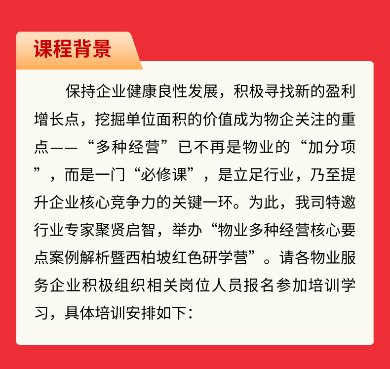 石家庄站 4月19日-21日 | 物业多种经营核心要点案例解析暨西柏坡红色研学营