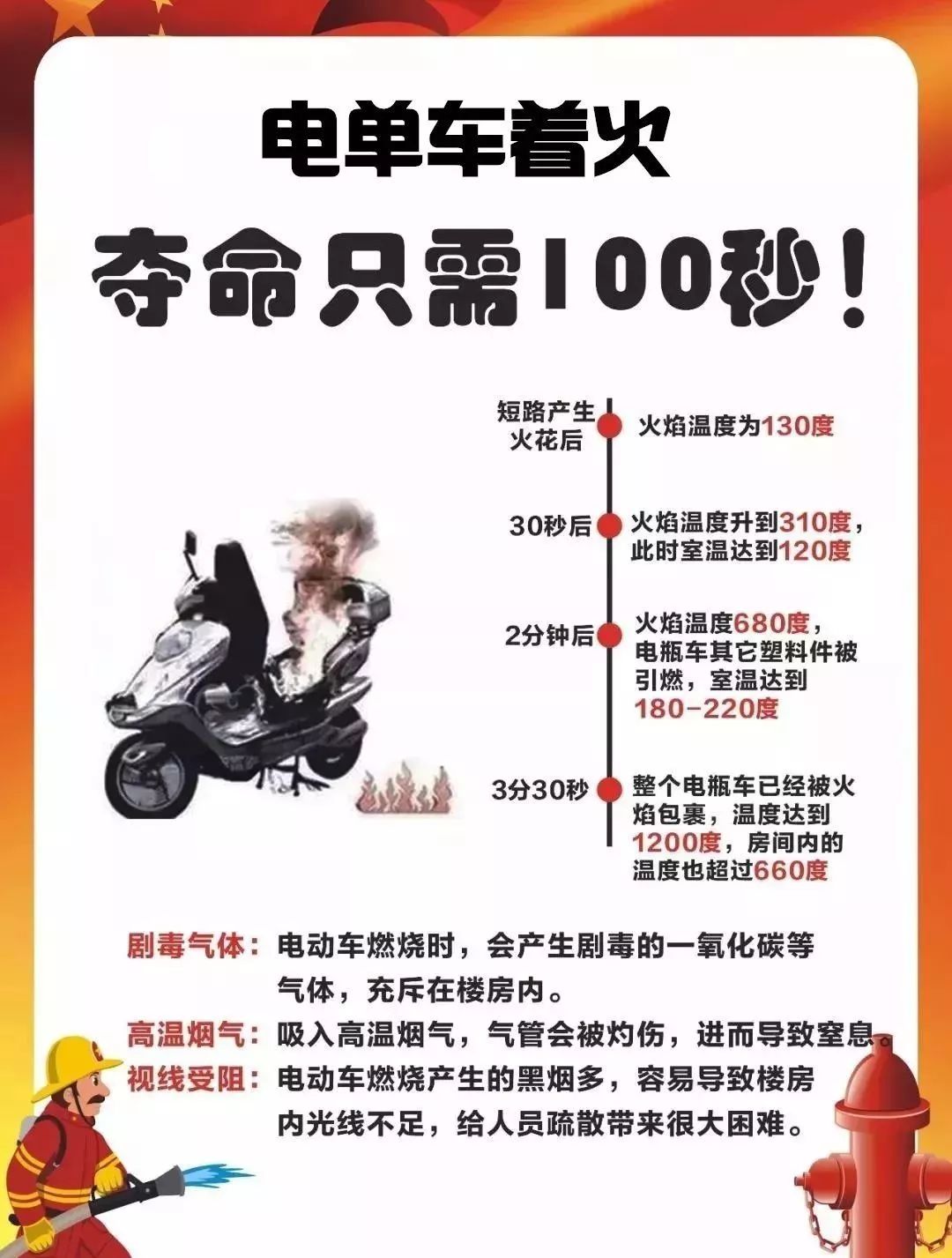 一、严禁电动自行车在公共门厅、疏散通道、楼梯间、安全出口等公共区域以及室内停放或者充电,不要飞线充电,电动自行车不要改装,充电器要配套,充电时保持警惕,闻到异味或听到异响立即断电,不超时充电,远离可燃物。